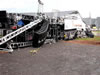 The Retrospect stage didn't fair much better. After things calmed down about 45 minutes later, as the huddled masses back in the press area began to break up, Brian and I started our walk back to the parking area. The first thing we noticed was the stage completely demolished as you can see by the pictures. Fortunately no one was hurt on this side and after a closer inspection of the wreckage, any hope of even trying to re-erect the structure may be completely lost.