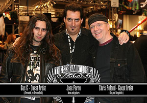 Jose Ferro: Gus G and I met five years ago in Japan. He plays a killer guitar and is such a sweetheart of a guy, he will give the shirt off his back. We started talking and became friends. Chris Poland I met through a friend at Yamaha, I always knew he was a great guitar player, so I asked what would it take to play on the CD. He said sure and sent me three solos for “Fire in The Blue Sky”.